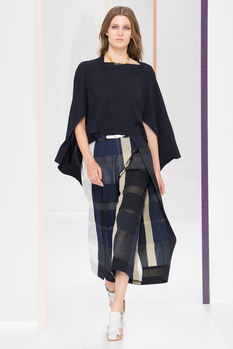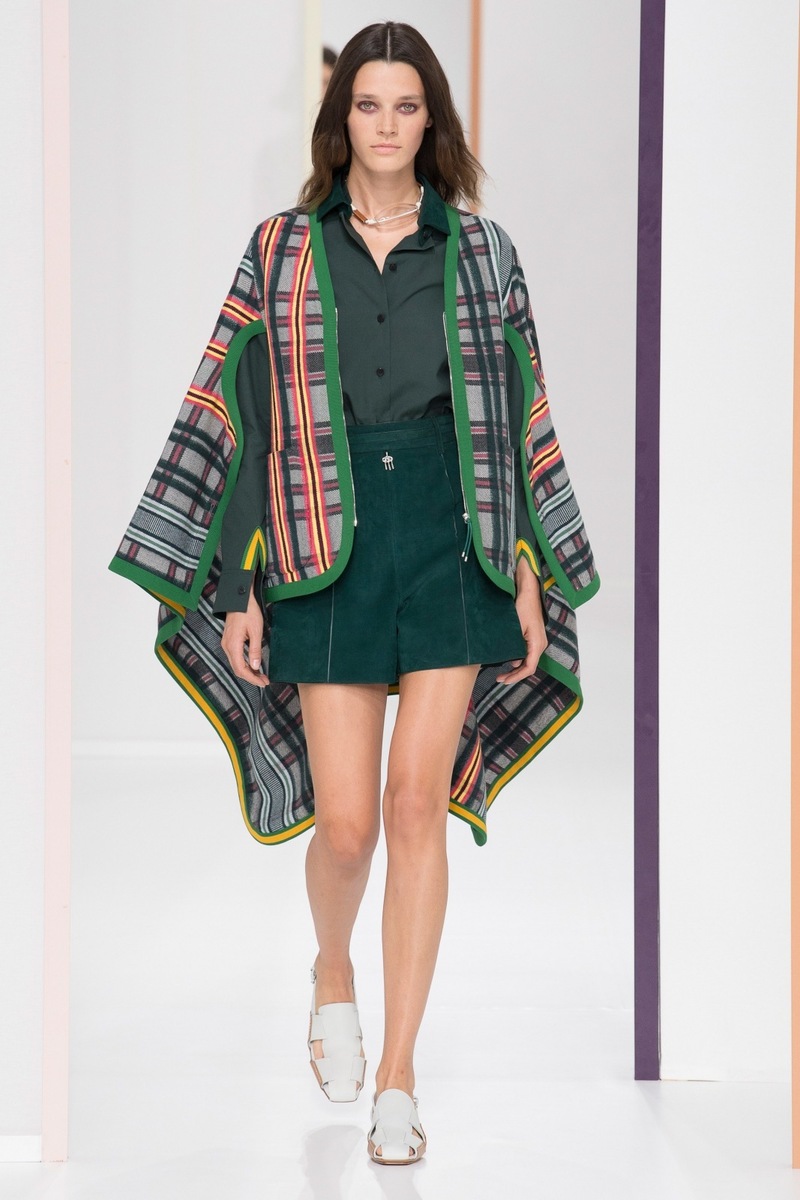 This luxurious brand is always unique and stands out. This slightly more conservative collection was no exception; however, everyone looked up in excitement when the catwalk was taken by a model with an astounding huge leather poncho inspired by the pattern of horse blankets.