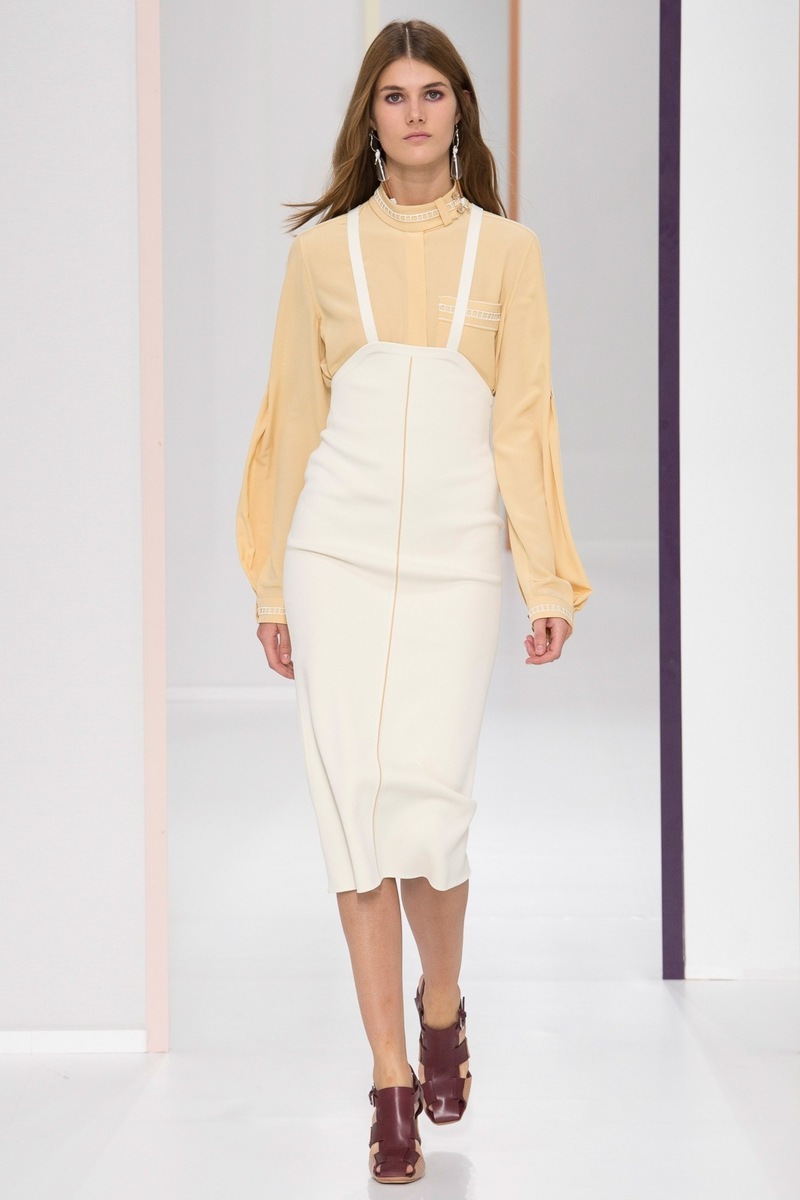 Unfortunately, I felt the rest was something like a fashion show of models from the immortal Czechoslovak series “Hospital at the End of the City” from way back when. In particular that white dress with a yellow blouse reminds me of the uniform worn by Nurse Ina just before it gets splattered with blood. I hope Nadège Vanhee-Cybulski kicks things up a gear next time. Or that they sack her as creative director straight away!