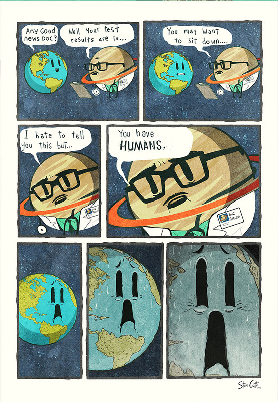 Steve Cuts’ illustrations are thought provoking. We all know that today’s world indeed has many imperfections, but is it really that bad?