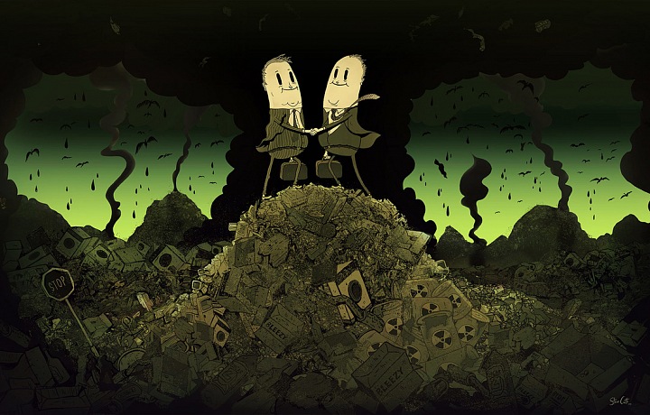 Join us and explore the luxurious virtual gallery of this unique artist, who likes to criticize the modern world and the society he himself is a part of. Steve Cuts claims that the madness of humankind represents an infinite source of inspiration for him. His work exhibits humor, a lot of imagination and undeniable talent. His illustrations often have people taking the form of animals in order to further emphasize the sad human situations they depict.