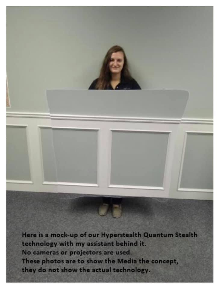 The "Magic Shield" called Quantum Stealth is made of inexpensive, thin paper, requires no power source, and unlike traditional camouflage materials, this invisible shield can work in any environment or season of the year in daylight. Light is essential for the shield to function.