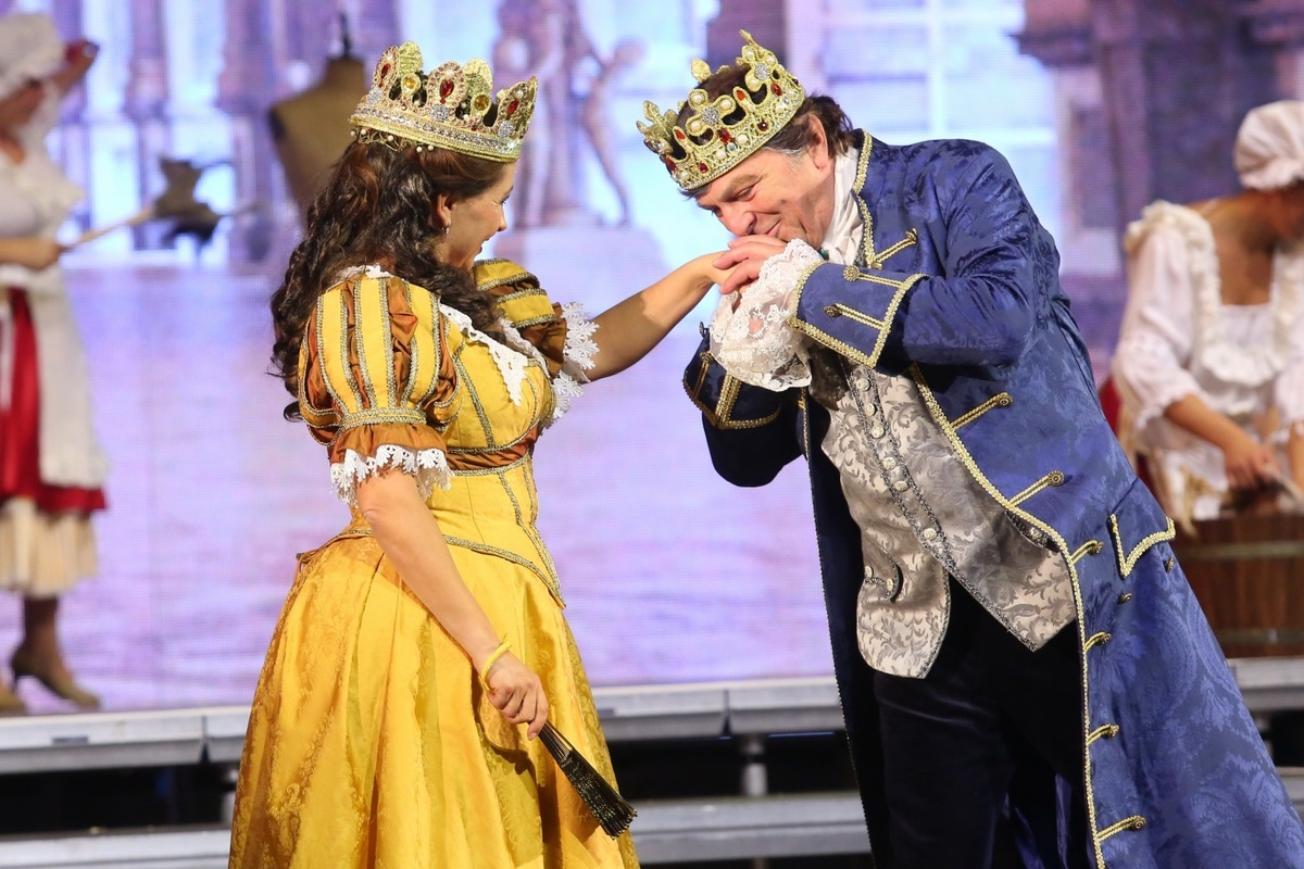 The infamous fairy tale directed by Václav Vorlíček (88) Three Wishes for Cinderella were transferred from the film screen to the theatre stage. Though you don’t find the actress Libuše Šafránková in the cast, the original actor Pavel Trávníček plays the king. The horse Jurášek and the owl Rozárka are not missing either.
