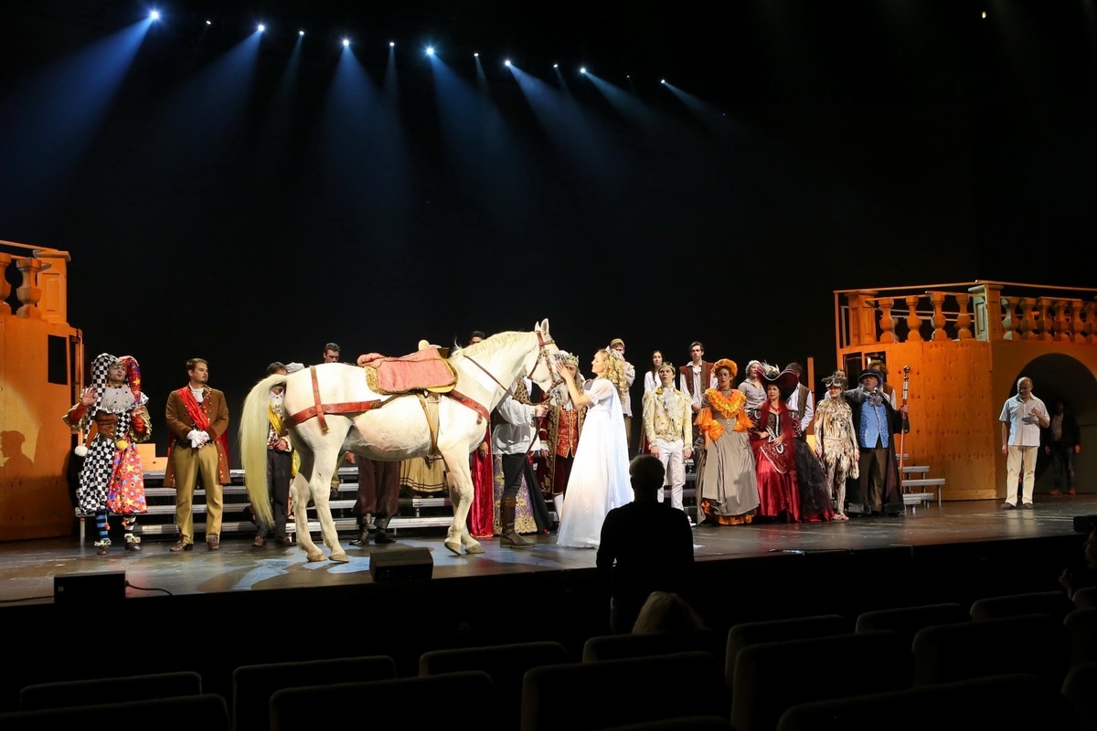 Live animals were a great surprise especially for children – a live horse on the stage together with a dog Tajtrdlík and pigeons picking peas and lentils. As soon as they suddenly appear on the stage, children's faces come alive and the audience is drawn in even more. Only the role of Rozárka the owl is played by a dancer, who gives advice to Cinderella and presents perfect acrobatic elements.