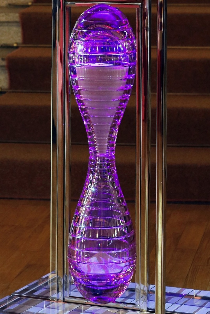 Czech glassworks of Moser is celebrating the 100th anniversary of foundation of the Czech Republic by the creation of a unique crystal artwork. It has created a minimalist object in the shape of an hourglass and called it Time. This is a unique piece produced in a single colour variant.