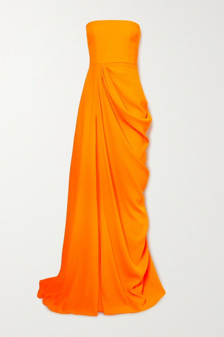 The model and wife of the singer John Legend donned an orange Yanina Couture robe on the red carpet, decorated with a sexy slit, deep décolletage, and ruffles. If it's not a bit over the top? Not at all! All we can say is, she was absolutely delicious!