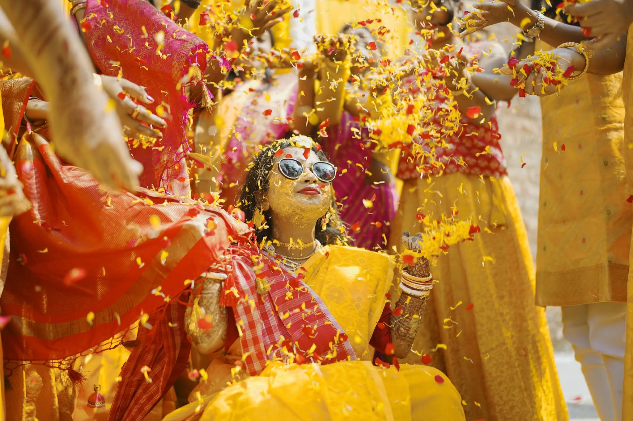 Gaye Holud is a fun ceremony during which the bride and groom are smeared with turmeric paste