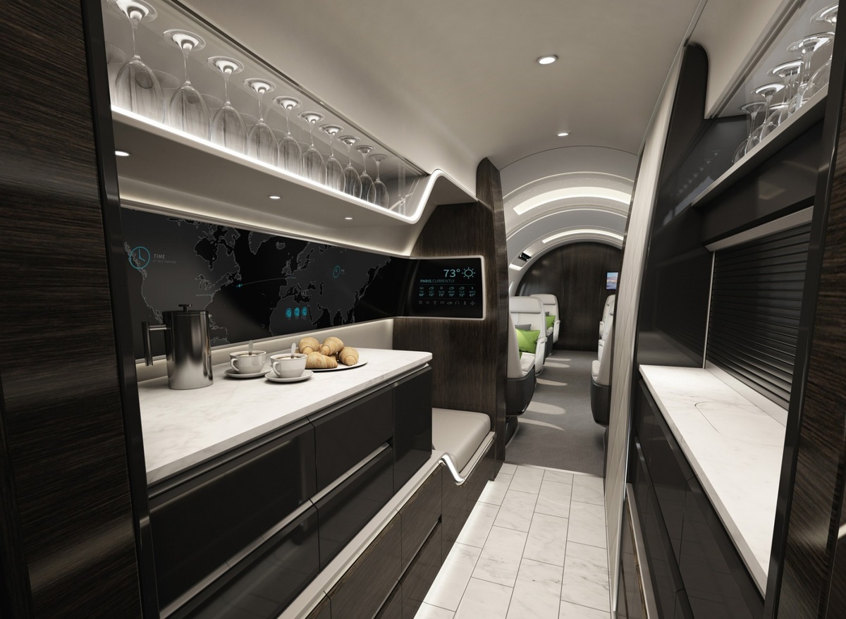Two companies participated in the development of the luxury aircraft: Lockheed Martin and Honeywell. Honeywell will act as a supplier of the "revolutionary" cabin design and cabin systems. The ultra-modern cabin space will feature large seating areas including sofas, a kitchen and ample space for taking a walk.