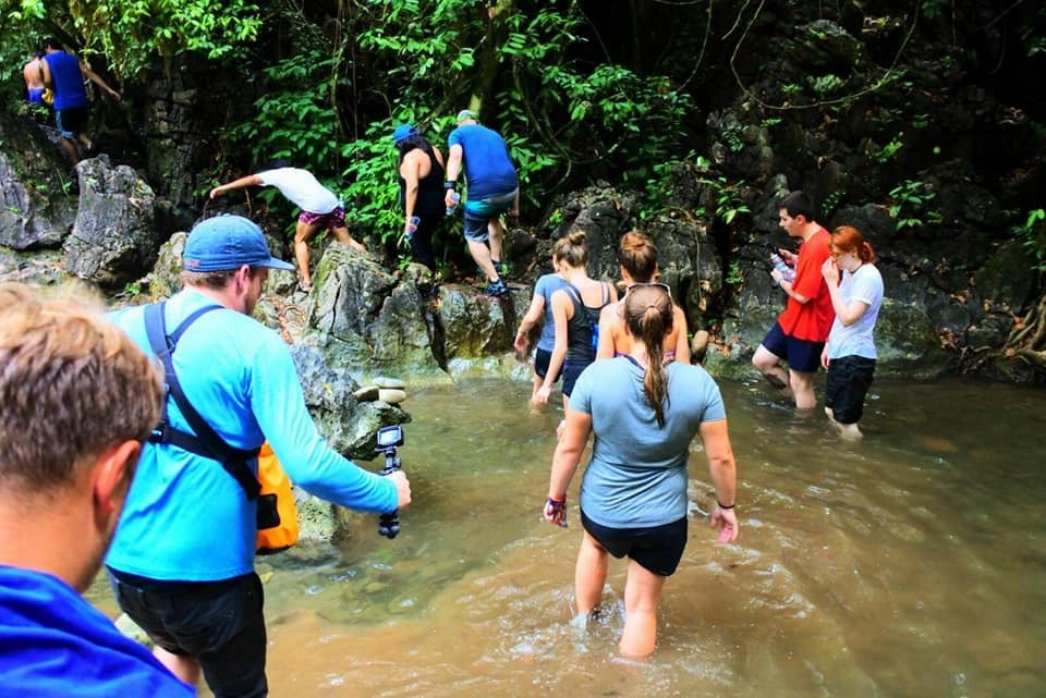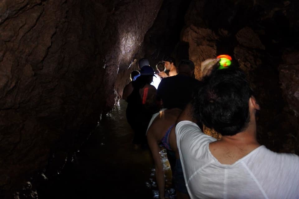 The instructions were absolutely clear: Tennis shoes and a headlamp! My trip to the lake began with a boat trip of nearly an hour over Cheow Lan Lake, which is surrounded beautiful tall lime cliffs. After arriving at the floating restaurant and bungalows we had lunch, which was meant to give us some energy before the subsequent hike through the jungle and cave visit. Because it had been raining for a few days in Khao Sok by then, the path was slippery and we had to wade through chest-high water in some places, trying to keep our balance and stepping on who knows what, while we investigated the local caves. My adrenaline levels were sky high.
