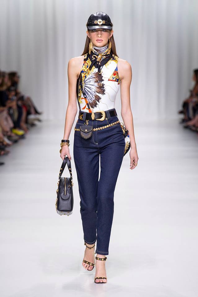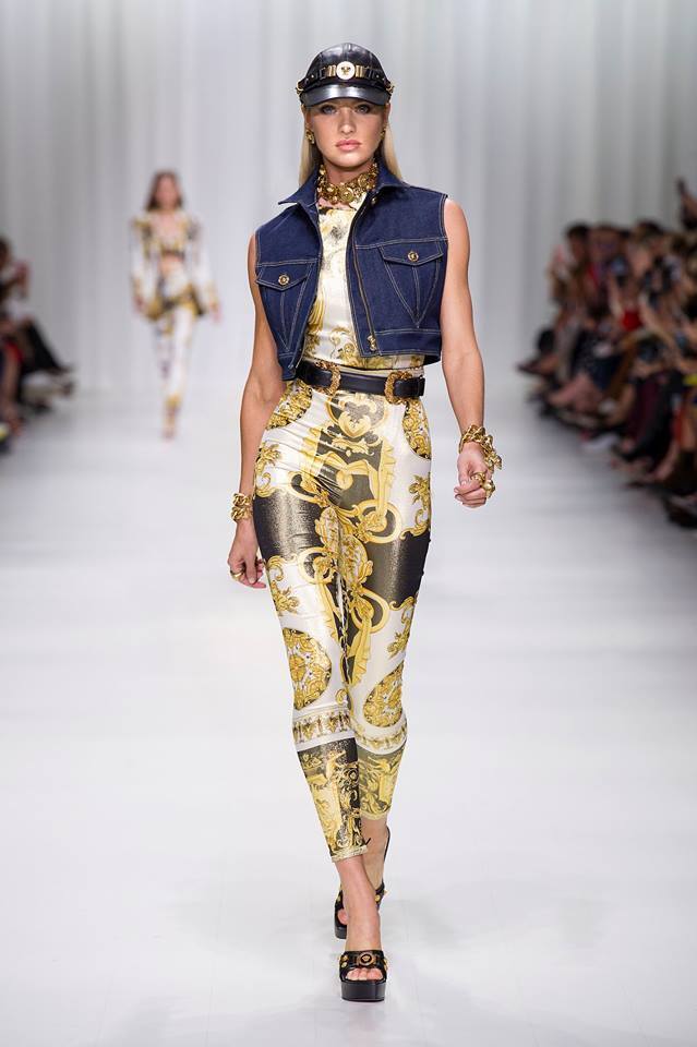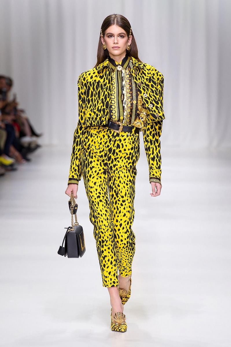 At the celebration of her famous brother’s work, Donatella used bold prints which were introduced between 1991 and 1995, including the legendary leopard print from the Animalia collection from 1992 and the Andy Warhol screen print with a Marilyn Monroe motif from 1991. We also saw prints from the My Friend Elton, Baroque, Icons, Metal Mesh, Native American and Butterflies collections.