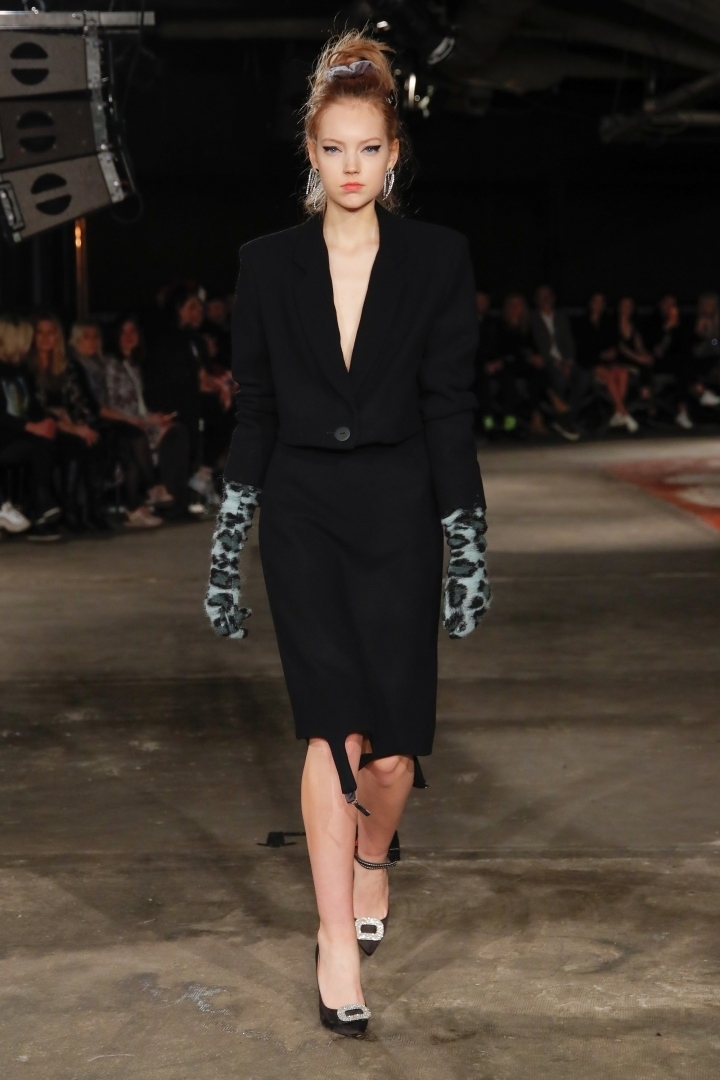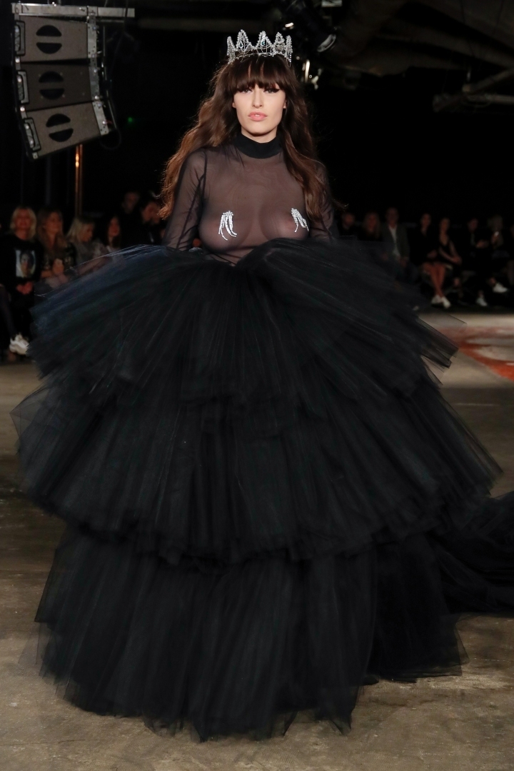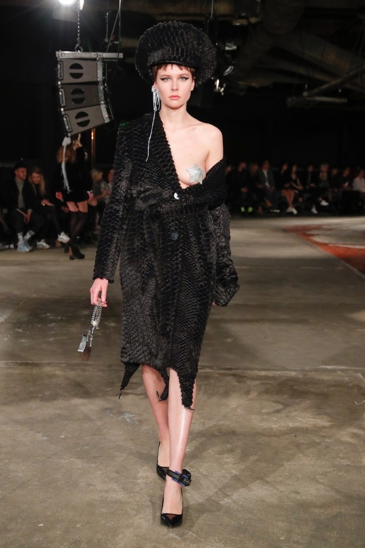 The FW19 collection is rich in animal designs, chic fringes, metallic silver and sensual dresses and coats with garter applications. A similarly dazzling piece was worn by Jitka Nováčková for the opening of the MBPFW.