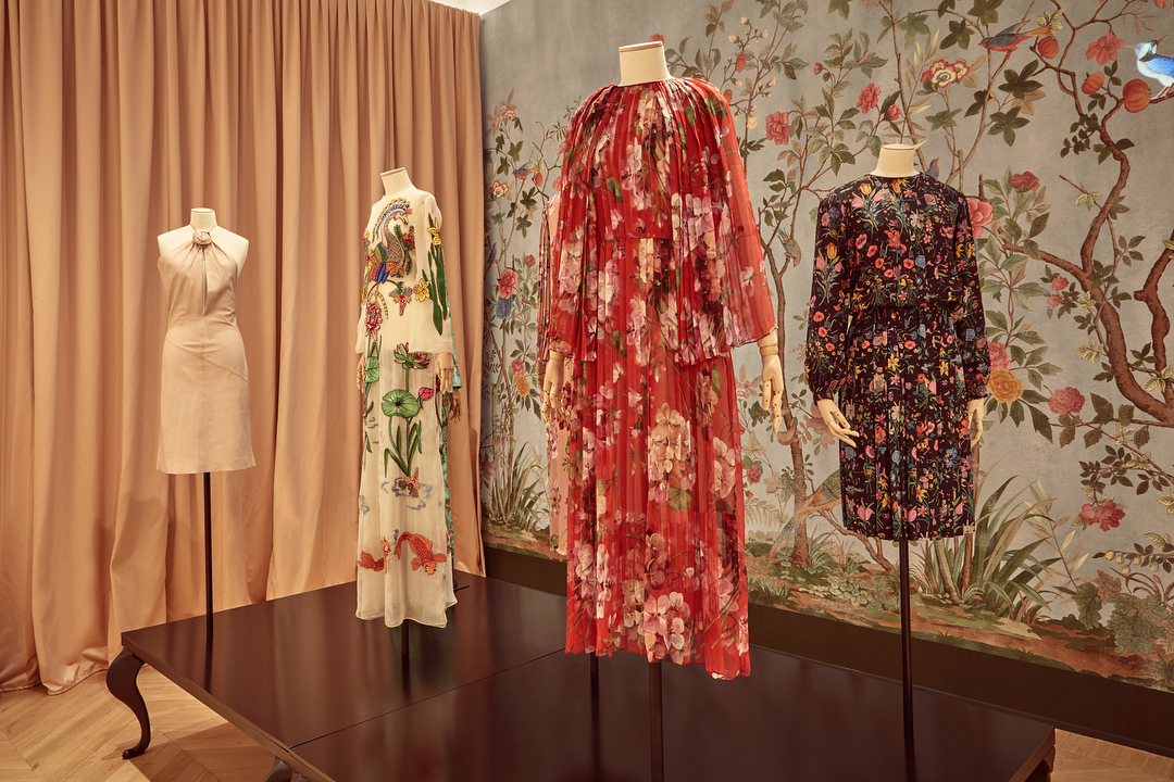 The main exhibition takes place on the first and second floors. The Guccification room celebrates the charm of the double G and presents vintage and modern versions of the logo – Guccy, Guccify and Guccification. Paraphernalia is a room dedicated to signature codes and symbols which define the brand. Cosmorama reveals the history of the brand’s elite customers and development. The De Rerum Natura section is divided into two rooms and looks like a natural history museum, examining Alessandro Michele’s interest in the iconography of animals and gardens. The walk through the blossoming fashion garden ends in the Ephemera room, where a view of the present is composed of videos, mementos and items reflecting the history of the luxury fashion house.