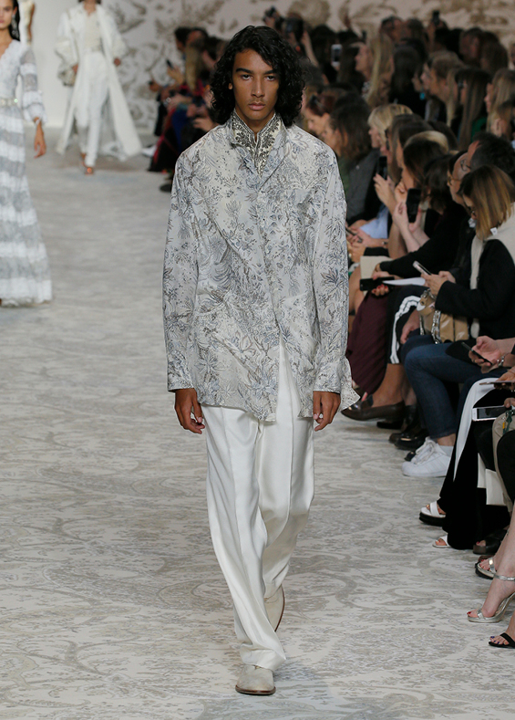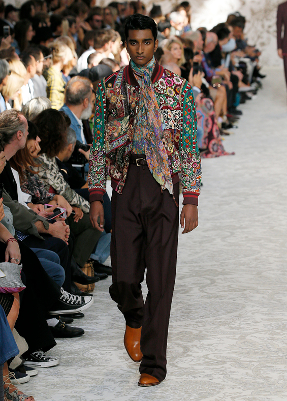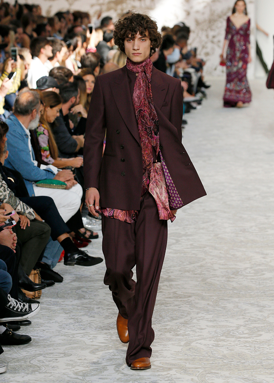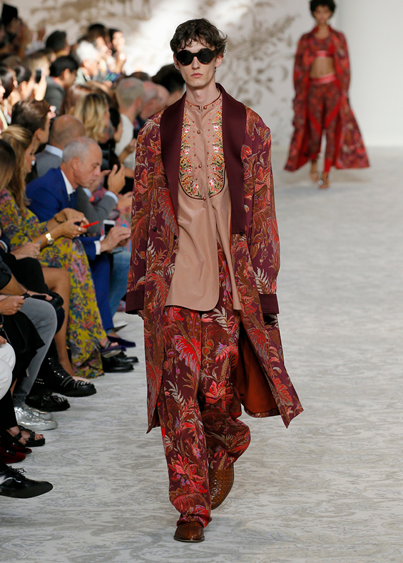 Men's fashion to celebrate the 50th anniversary of the Etro fashion house was in my opinion carried out in the style of "fake Elvis from Las Vegas met in Hong Kong with an Indian maharajah for a bowl of noodles." It is such a great mix of absolutely anything you can think of that it is quite difficult to know what is what.