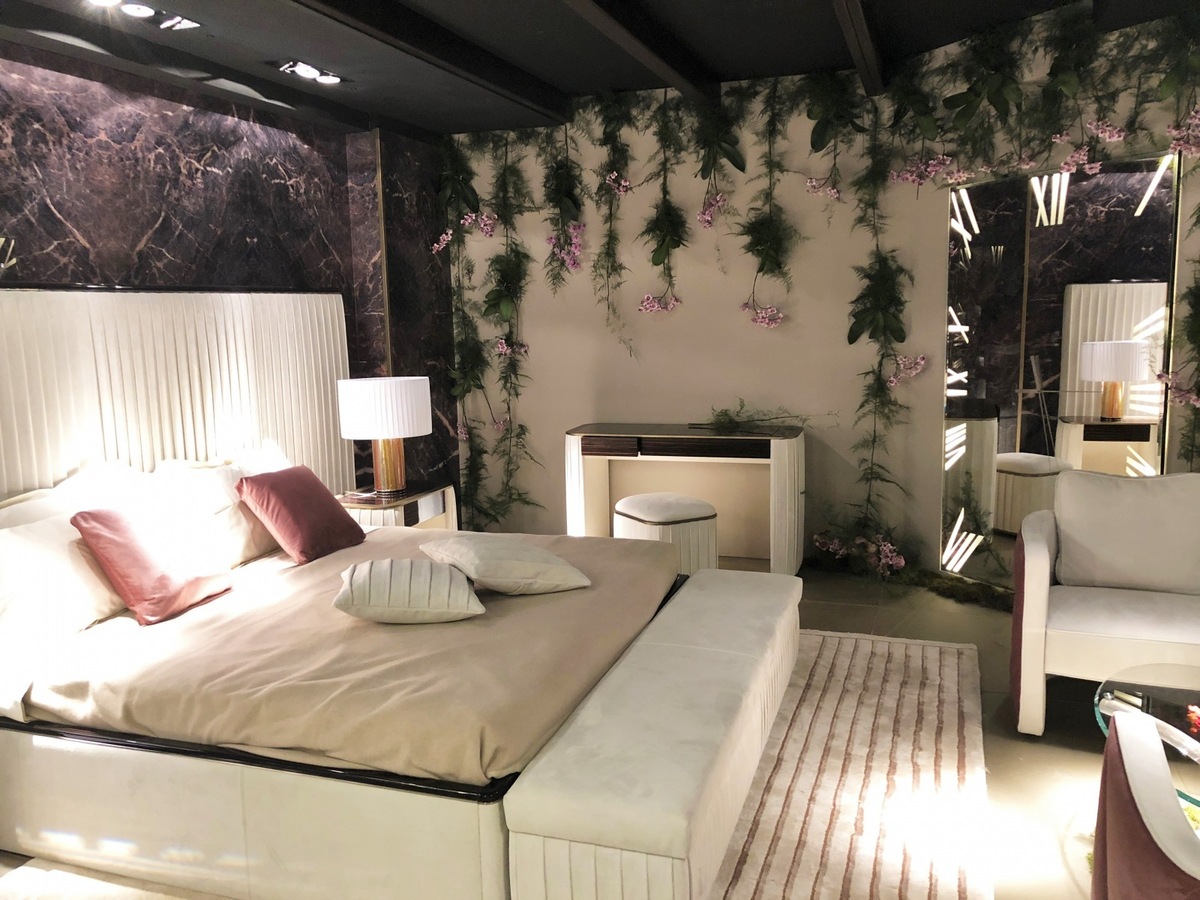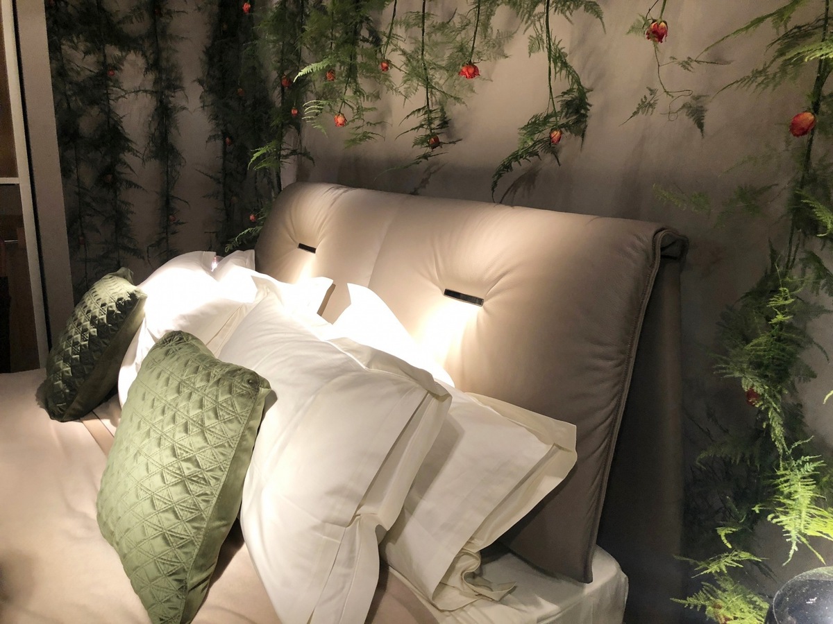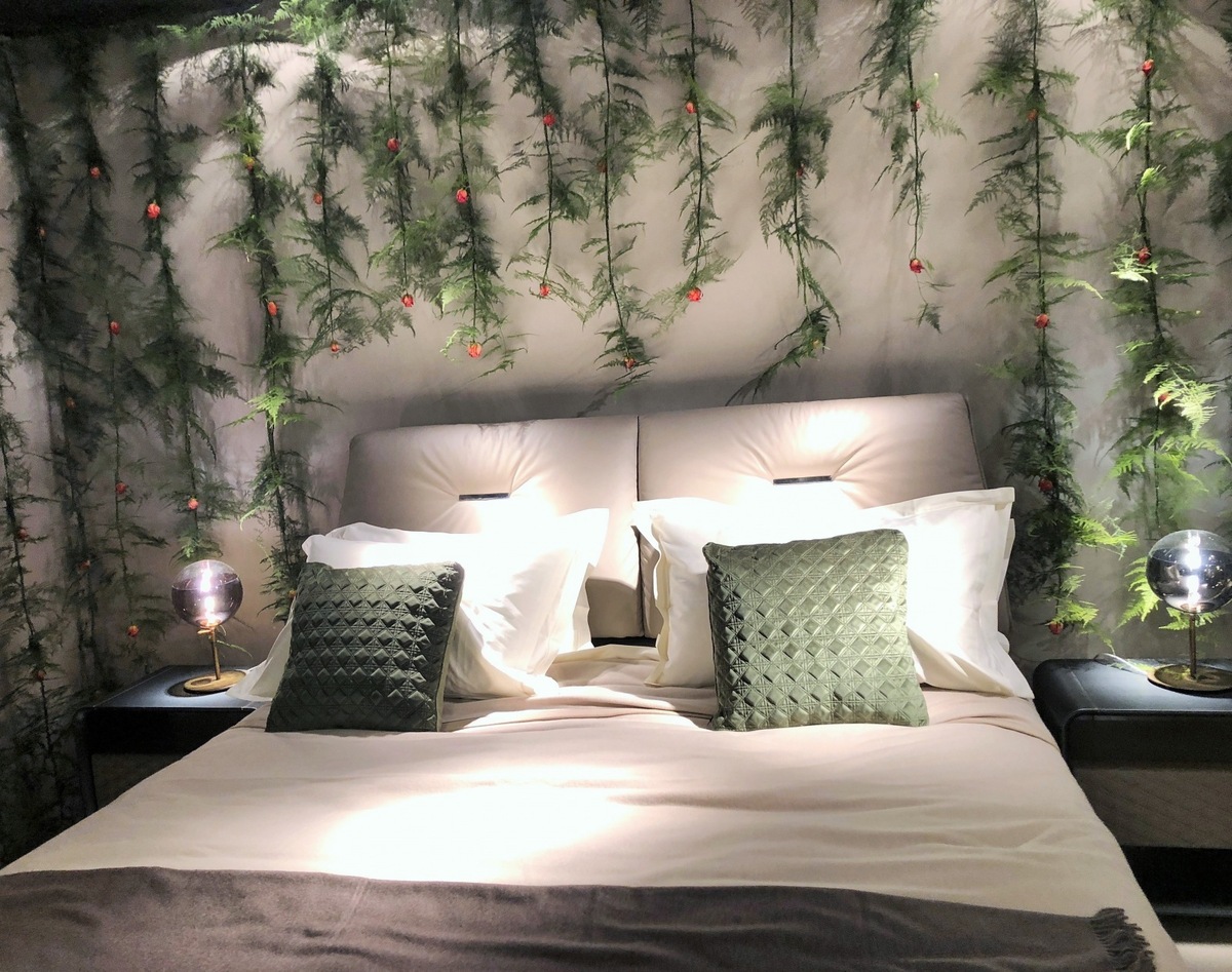 Part of the brand presentation is also a magical bedroom decorated by artificial flowers. The luxurious space evokes sleeping in a meadow accompanied by early morning bird songs. The intimate lighting provides the area by a charming spell and mystery. How would you like to sleep in a magical garden?