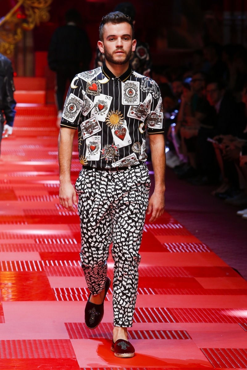 Unlike Versace’s, Dolce & Gabbana’s catwalk swarmed with colours. The bright 2018 SS men’s collection is perfectly suited for a night out in a casino. Luxury prints inspired by playing cards require a lot of self-confidence. Shiny materials only underscore the elegance of their wearer. In D&G’s style, we are in for a very playful summer next year!