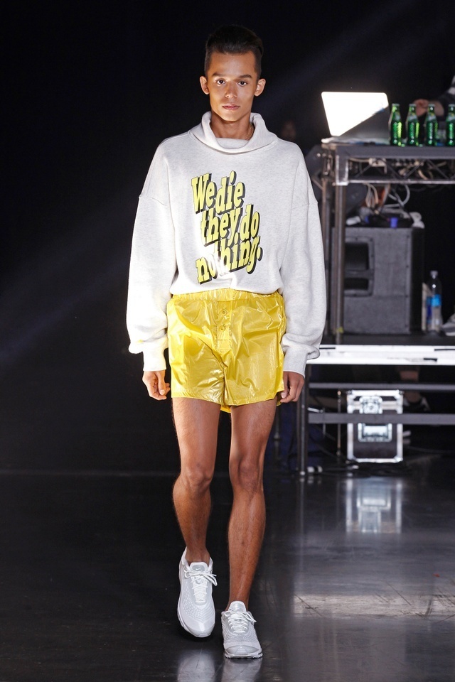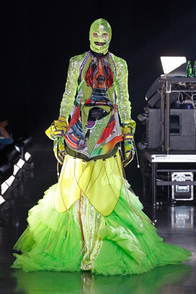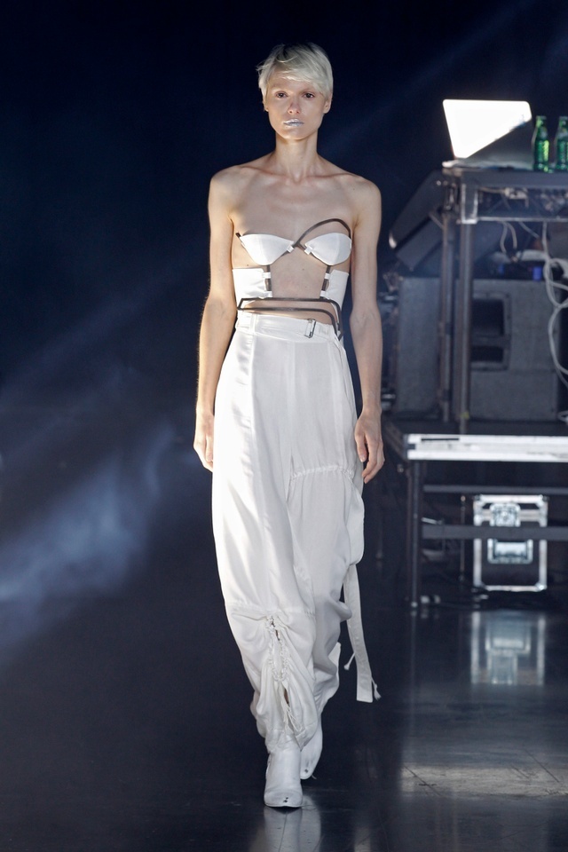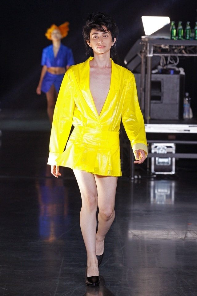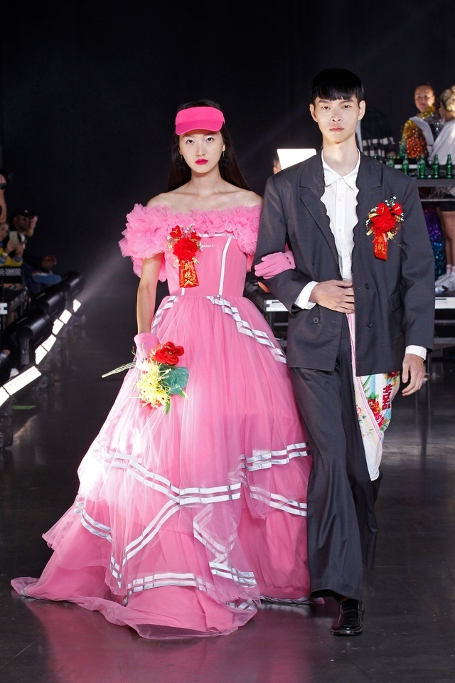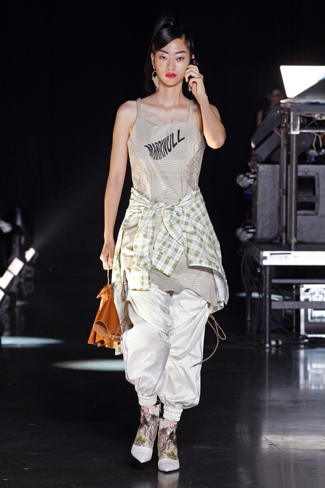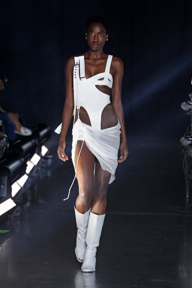 The designer duo operating under the MARRKNULL brand stuck to rather routine conventions and presented nothing new compared to the other designers. The denim outfit with cowboy boots and cotton-candy pink dress left us pretty cool.