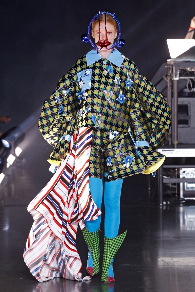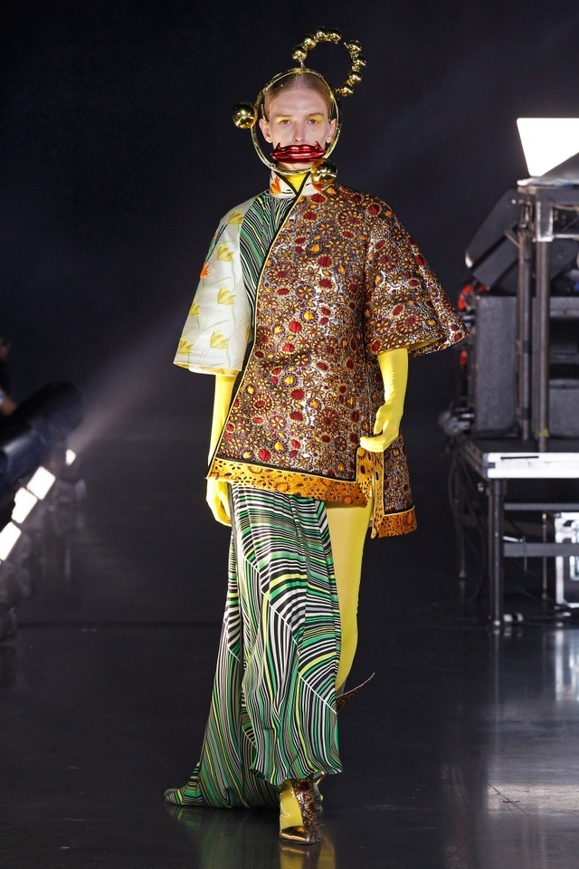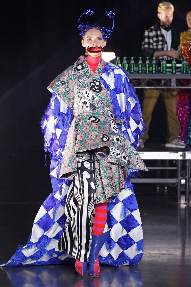 The only outfit I found at least slightly tolerable were the denim overalls by VFILES. And obviously the only reason was that they were worn by a sexy young blond guy and I felt like tucking a fifty-dollar bill into his trouser leg! Why didn’t this hot boy give us a Chippendales' show, instead of the plastic Lil Kim with her face stretched all the way to her shoulder blades??? What a shame...