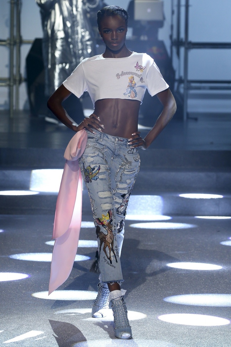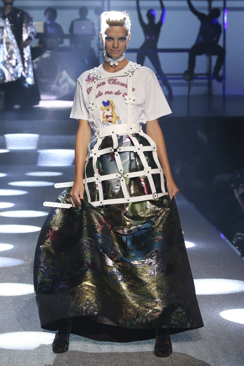 I’ve always considered Irina Shayk and Adriana Lima to be rebellious Angels with a bit of the devil inside them. Perhaps that’s why they were so natural at the latest fashion show by Philippa Pleina. A simple cotton mini-dress with a print depicting the Disney character Cinderella, on her knees and with a leather gag is two things: a real depravity, and also a great way to provoke!