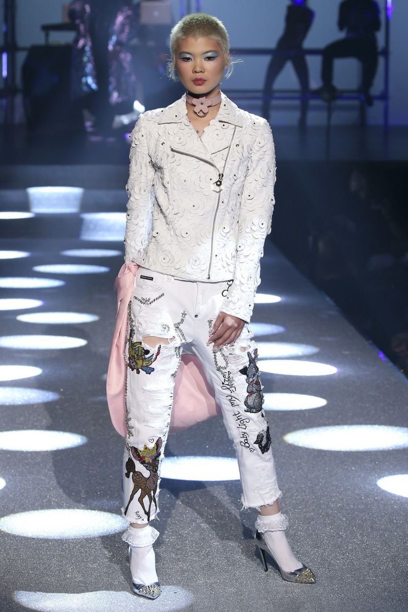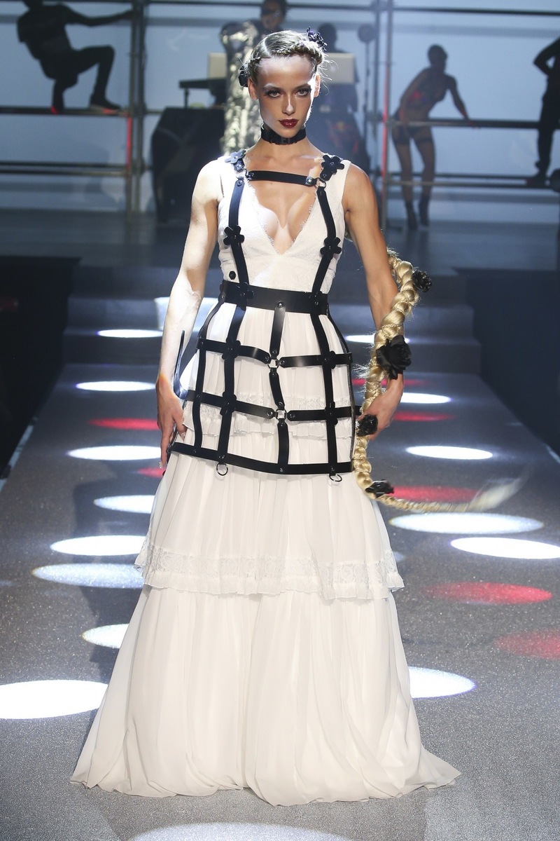 The German designer also included more prudent pieces in the collection – such as T-shirts, tops, cotton dresses with brave logos and texts, or evening gowns. We especially liked the luxurious dress with a lace top shown by the beautiful Adriana Lime and the purely white dress worn by Hannah Ferguson. Both were truly beautiful, but the effect was ruined by strange leather belts.