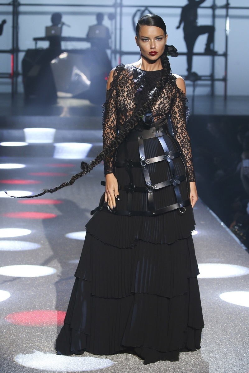 The fashion show proper was introduced by Adriana Lima, who wore an extremely long braid. Her dark looks and T-shirt with the text “Good gone bad” did a great job at immediately showing off the spirit of the luxurious SS 2018 collection – a tribute to inner desires and a step against repression of any kind. In fact, its brave fashion pieces will allow you to finally reveal your hidden rebellious nature!