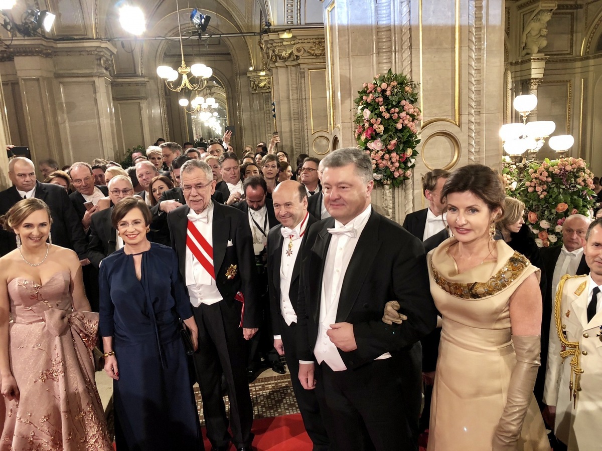 There were many celebrities and famous personalities attending the ball. In addition to the Austria president, Ukrainian president Petro Poroshenko was also in attendance and an activist from the FEMEN movement came “with him”. The elegant atmosphere was somewhat disrupted by her bare top and the rather unflattering message addressed to the Ukrainian president: Poroshenko - Get the Fuck Out of the Ball. On the red carpet, the activist Alisa Vinogradova informed attendees at the ball that it is impermissible for somebody like Poroshenko, who is accused of embezzlement, to sit at an aristocratic table.