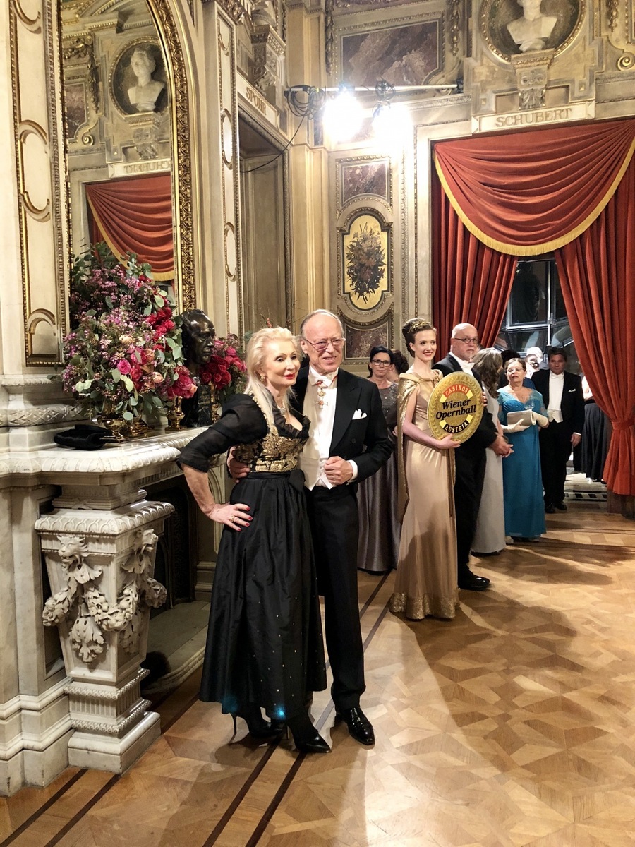 Naturally, there was a great number of artists representing the Austrian and international scene. Acclaimed opera singer Valentina Nafornita with popular tenor Pavol Breslik, ballerina Liudmila Konovalova, actress and singer Maxi Blaha, model Barbora Maier escorted by businessman Klemens Hallmann, German actor Hainer Lauerbach, actress Silvia Schneider, writer Waris Dirie or the famous Dj Ötzi. Other posing for photographers included cultural manager Daniel Serafin with singer Hareld Serafin or actor Gregor Bloeb with artist Nina Proll. Outstanding robes were worn by fashion designer Eva Poleschinská and singer Dorretty Carter in a golden gown by designer Maurizio Giambra.