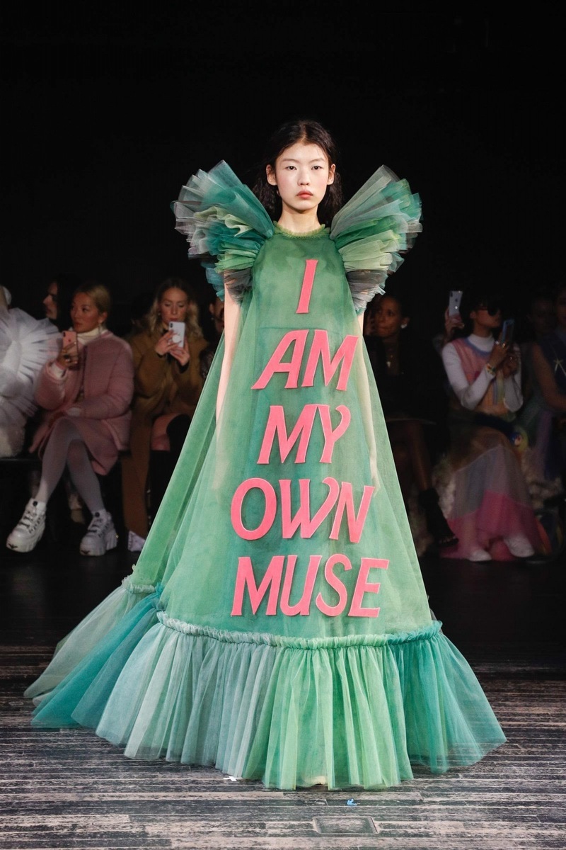 We are used to oversize tulle robes, especially from the luxury Italian brand Giambattista Valli, which is very accomplished in that direction, and it won’t be so easy for any competition! In the case of Viktor&Rolf we’re a bit on the uncomfortable side. If we omit the inscriptions, which really elicit the impression ‘I’m angry with everything and everyone, including myself’ we’re only left a few outfits, which balance on the border between luxury art, and punishment-worthy kitsch.