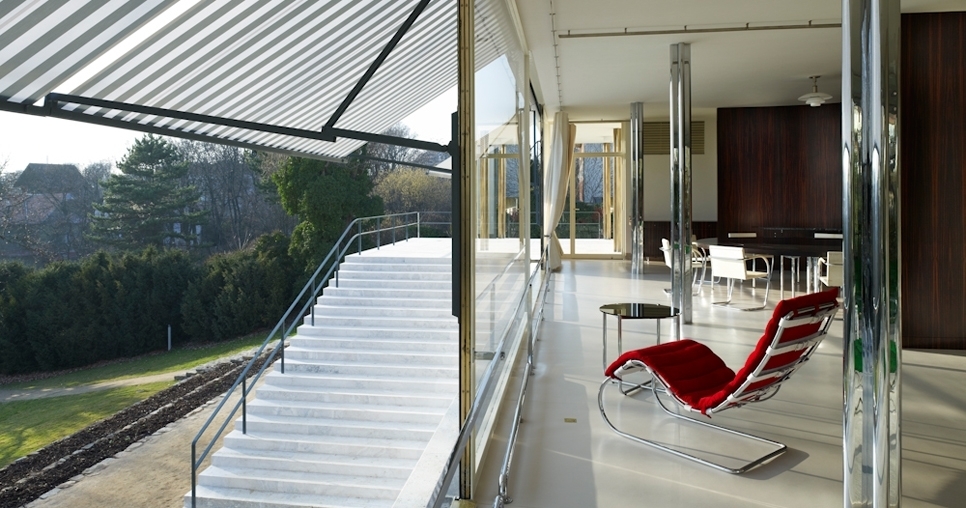 The architect and his co-workers strove to furnish the interior of the unique villa in such a way as to be in harmony with the style in which the building was designed, i.e. functionalism. This is why you will find here furniture made predominantly from steel tubes and panels and from fine woods such as Macassar ebony, rosewood or zebrawood. Rare onyx from Morocco is also found in the materials used. You will not find single luxury decoration or work of art in the villa. Except for one statute – the torso of a girl by Wilhelm Lehmbruck dating back to 1913.