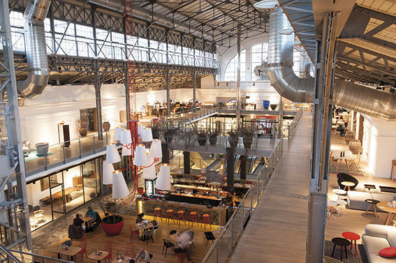 The monumental structure has preserved its original steel structure and historical elements. The building is exceptional with its open, airy space, filled with light from the uncovered windows. The pavilion’s luxury tiling was designed by Patricia Urquiola. The open space of the La Boheme Café is equally unique.