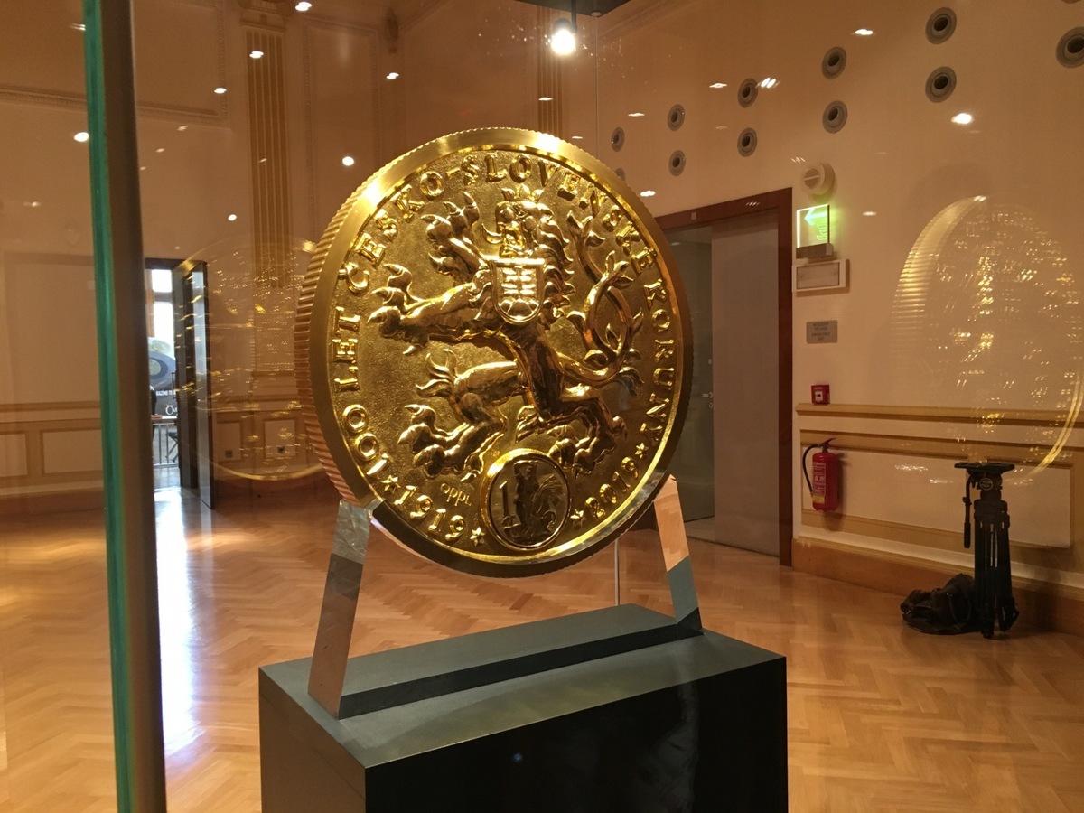 The biggest draw of the bank is a golden coin weighing 130 kg that is 100 million crowns in denomination, made last year to celebrate the 100th anniversary of the founding of the republic. Visitors could see it in a small hall throughout all of Saturday, and the CNB even came up with a way for everyone to carry it home, albeit in their phone. The bank actually created a 3D model, so that everyone can now study it closely and admire the work of the engravers.