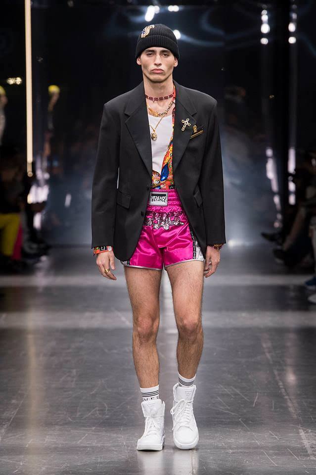 The FW 19/20 collection is a bit of a mix and match. As Donatella herself said: "The models clearly show that there is freedom in fashion now. Freedom of expression and freedom to show what we want." The combinations of designs and colours speak for themselves; some are cool but others look like matching the unmatchable. An example? Luxurious gold-coloured boxer shorts in combination with a long coat, undone shirt and neck chains. Does anyone actually want to wear that?