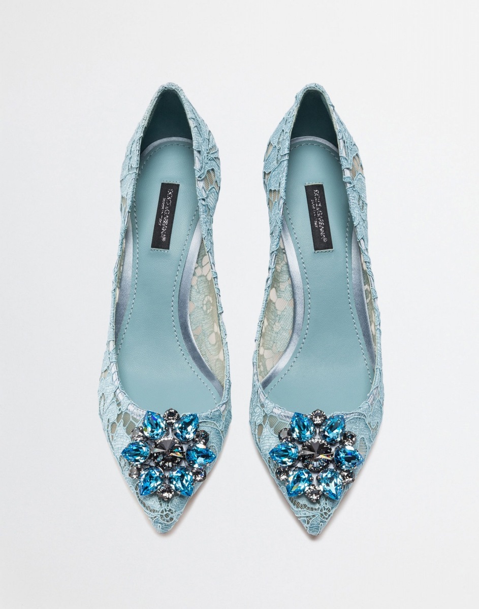 As tradition says, we bring you something blue. Stylish ballerinas with crystals can be purchased for 17 900 CZK at Jimmy Choo and romantic shoes with lace on an ideally high heel offer for 16 650 CZK by Dolce & Gabbana.
