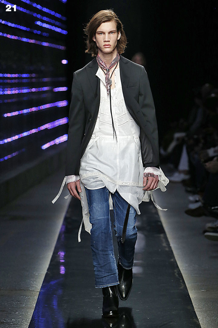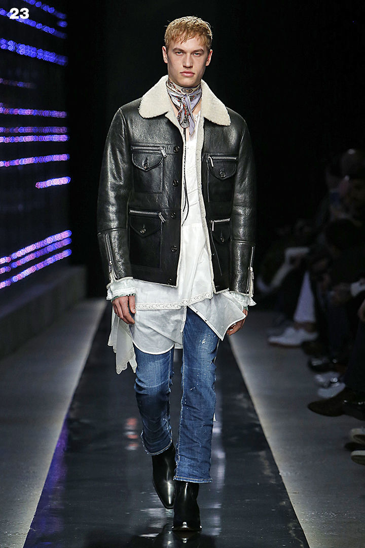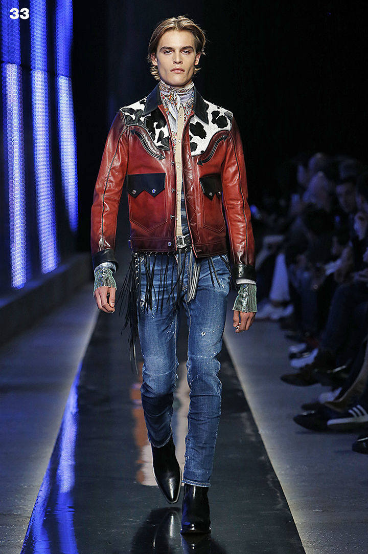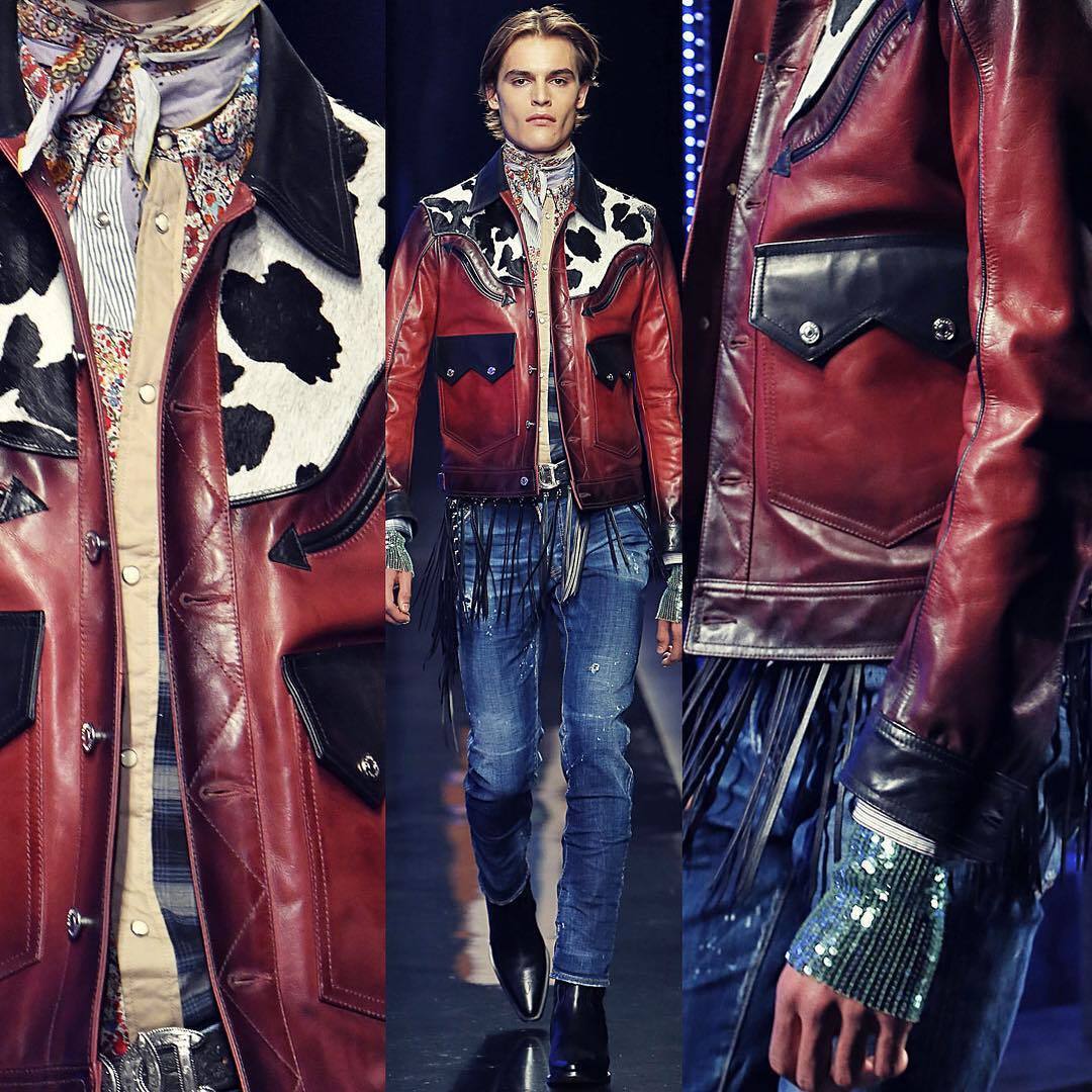 Collection that will transport you to the Wild West - that is how you could characterise the luxury collection FW 2018, which is full of Western elements, going back to the iconic items of a Dsquared2 wardrobe. Ripped jeans, leather trousers, tartan shirts, cowboy jackets and vests rich in non-traditional embellishments have become key in the creation of the luxurious men's collection.