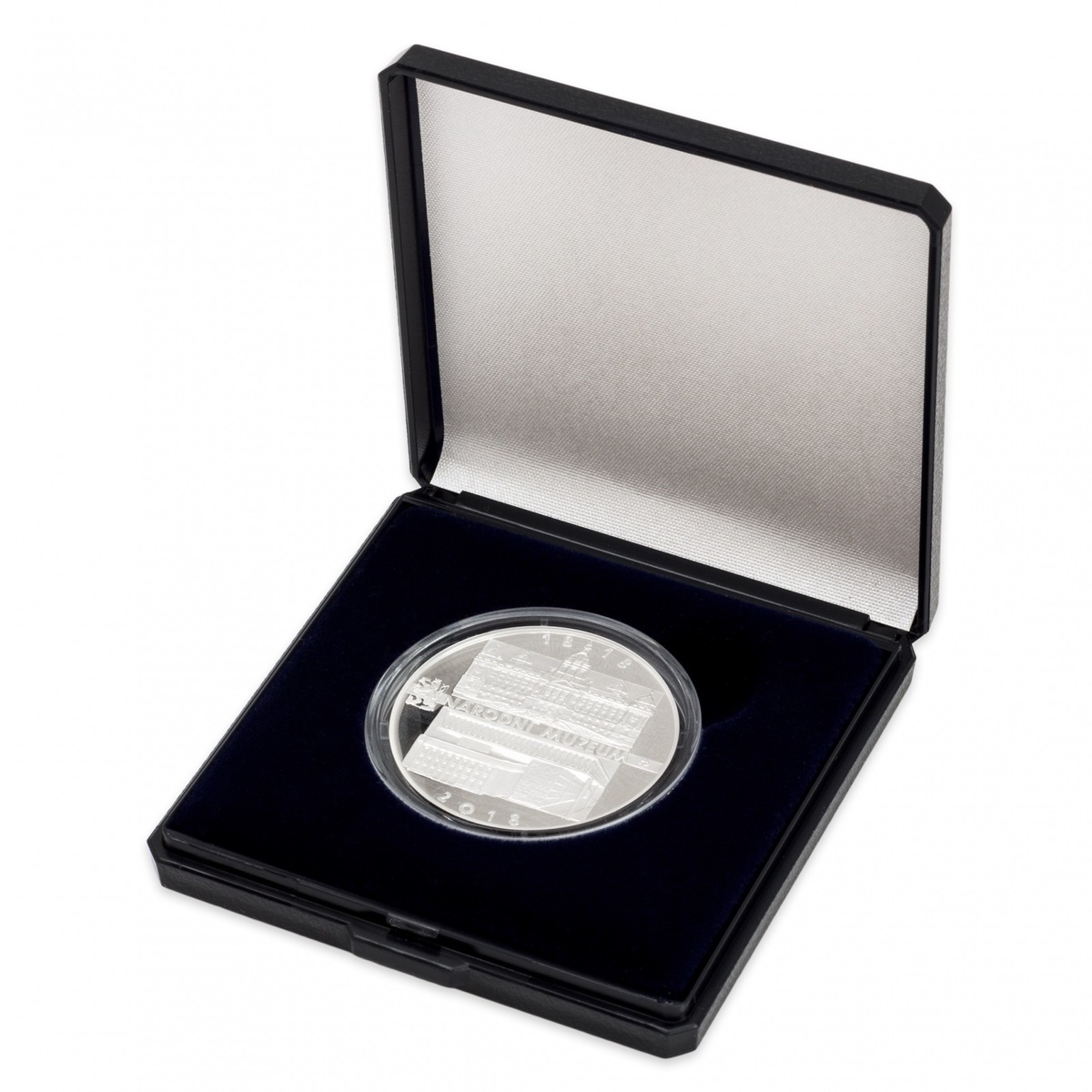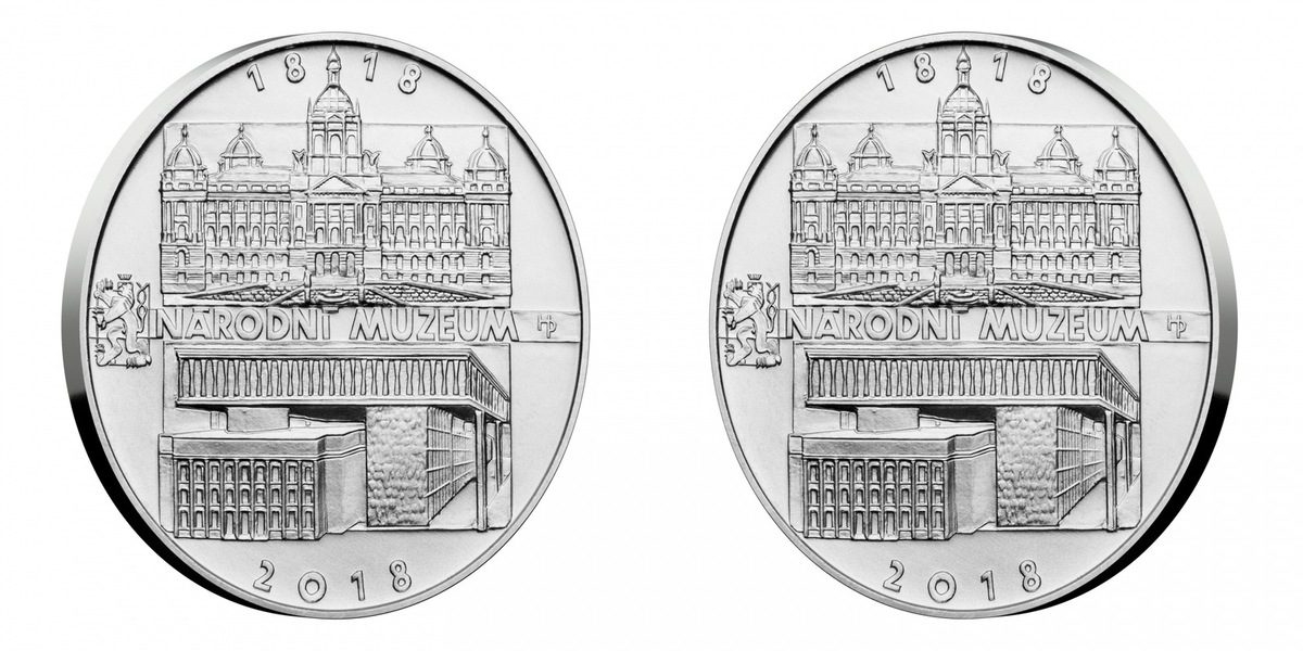 On the front side, there are depicted trilobite, the marl Celt head from Mšecké Žehrovice, the denar of Prince Boleslav II., the skeleton of the fin whale and two extinct animals – the thylacine and the Cape Verde giant skink. These are important exhibits that are part of the collections of the National Museum. The back side depicts the historical building and the new building of the National Museum with years 1818 and 2018. This commemorative coin is made of 925 portions of silver and 75 portions of copper. Its diameter is 31 mm and it was issued in the number of 16,200 pieces.