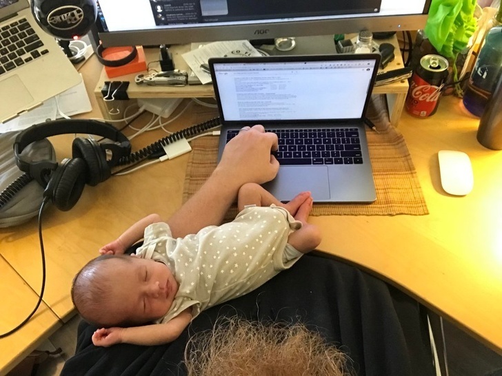 Men often refuse to give up working on the computer and playing games even when they’re supposed to be watching their offspring. How do they usually solve this problem? If the baby is still small, they lay it down or leave it hanging right in front of them, so as to keep it in their field of vision. In case of grown-up children, they charge them with an important task, such as carrying empty beer or wine bottles back to the kitchen, making sure the whole family is busy.