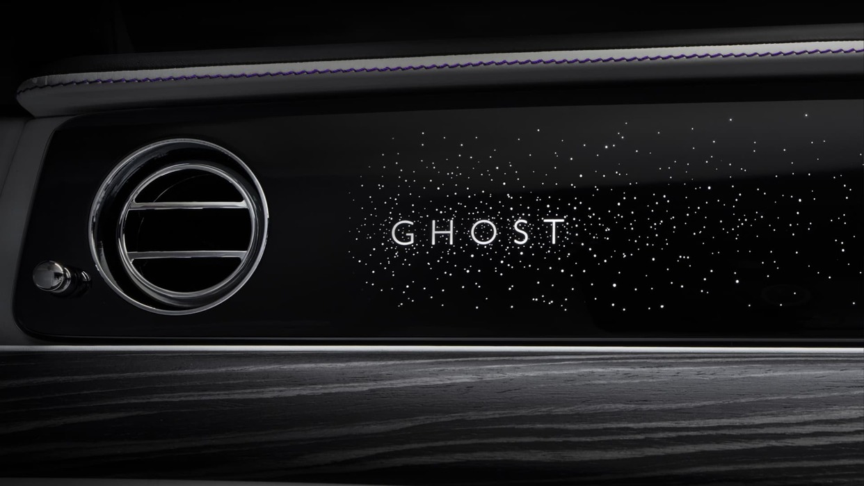 Other features include a backlit instrument panel, which was created in a two-year process and required a total of 10,000 hours of work. The result is an elegant dashboard with a glowing Ghost logo, surrounded by more than 850 stars. The whole constellation as well as the logo are located on the passenger side of the dashboard, and when the car's not in use, they are completely invisible. This innovation subtly reflects the starry sky in the roof liner, called Starlight Headliner, which has become part of Rolls-Royce's iconography just like the Spirit of Ecstasy, the Pantheon Grille radiator grille or the "Double R" monogram.