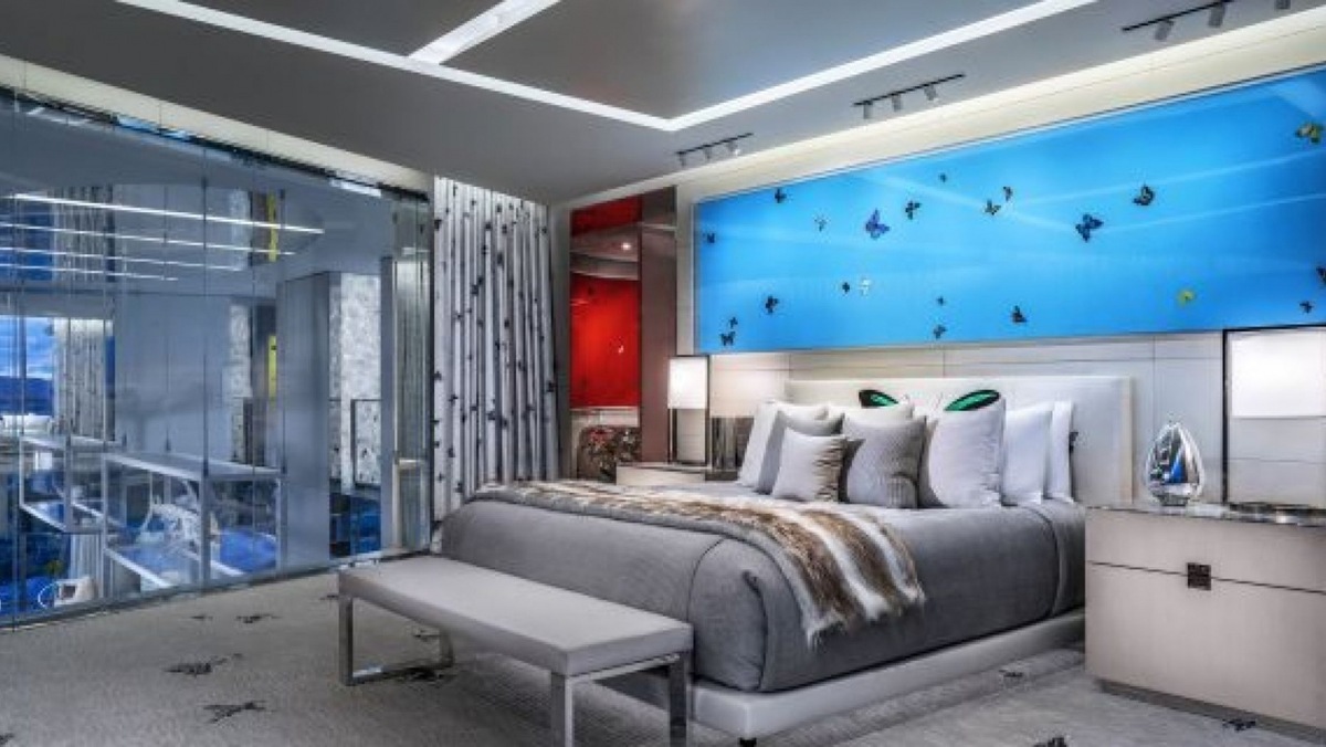 This unique space is the work of British contemporary artist Damien Hirst. His iconic design can be found in the combination of water features and butterflies, which are reflected in the artworks, furnishings and accessories in the room. The result is a collaboration of two architectural firms Bentel & Bentel and Klai Juba Wald Architects. Creating this luxury cost 690,000,000 USD, which is 16,008 000,000 crowns.
