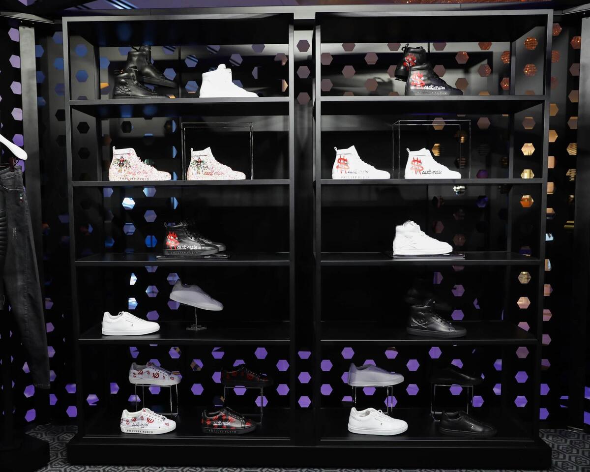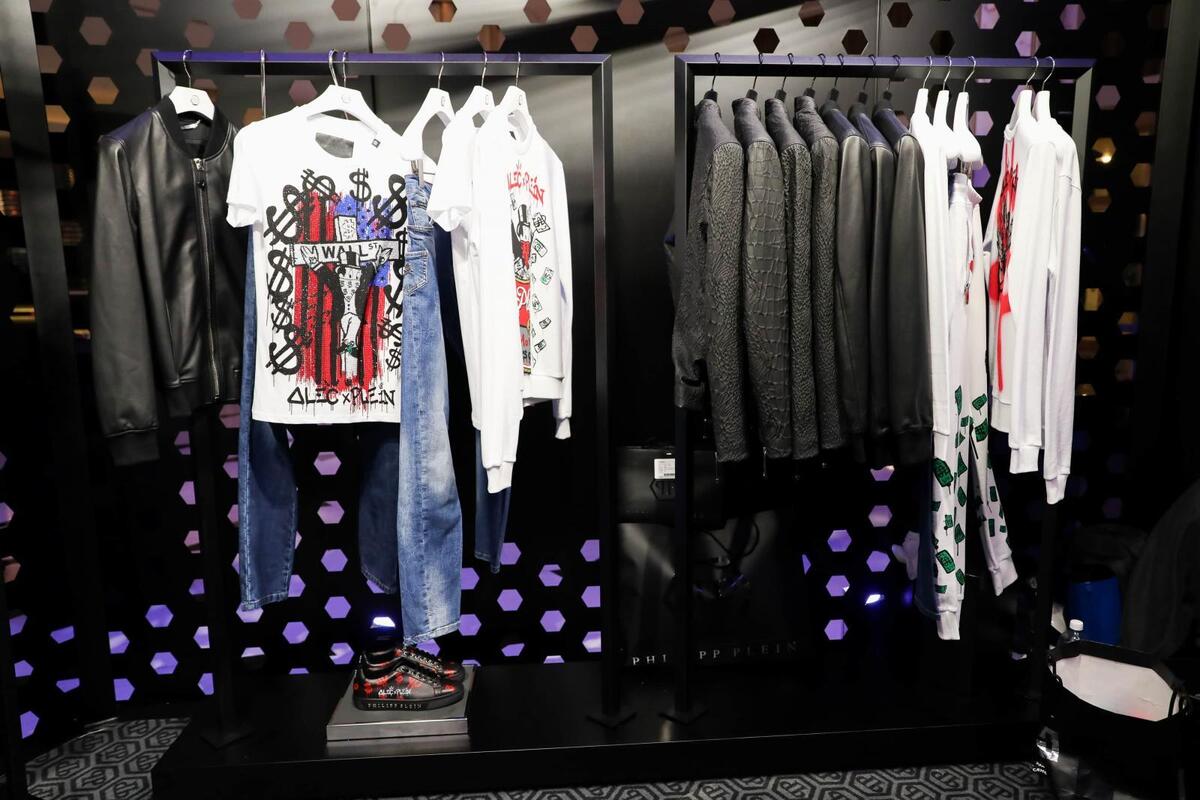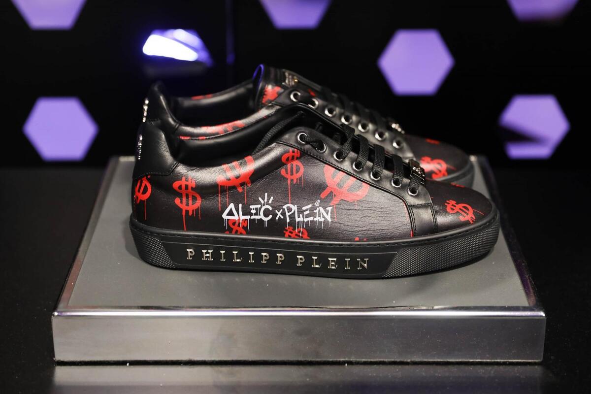 The German fashion designer, Philipp Plein and the graffiti artist, Alec Monopoly, joined forces and created a luxury collection Resort 2018, which was presented at the Art Basel fair in Miami. The unusual and ironic graphics in combination with luxurious materials were used to create hand-painted sneakers, t-shirts, sweatshirts, jeans, leather jackets as well as handbags.
