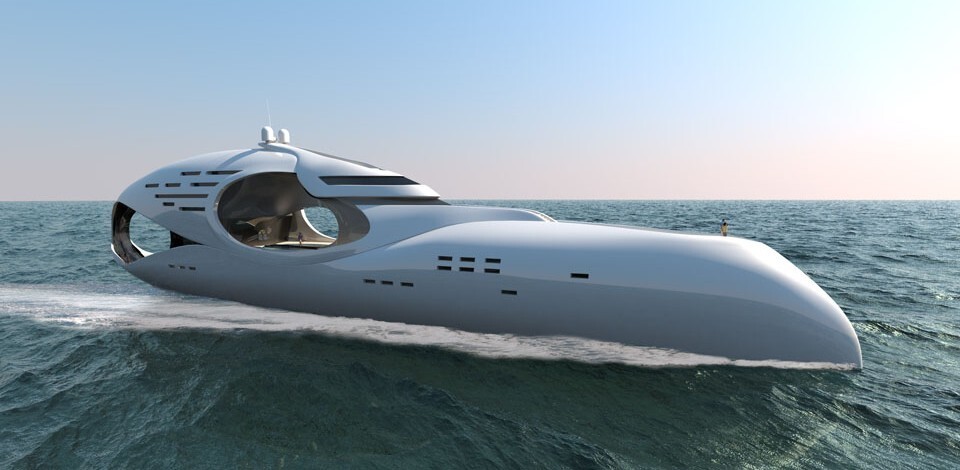There are no limits to your imagination. The futuristic appearance of the yacht is supported by the ship’s open interior, the large eyes affords a view of the unending horizon, and the shape? It really is reminiscent of an enormous white whale thanks to its rounded and smooth lines. The bottom line is that you can choose what it reminds you of most.