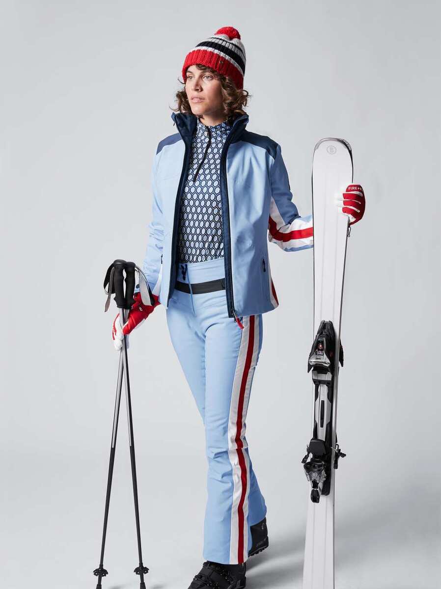 Inspiration from the 60s which often dominates the catwalks nowadays can also be found in the Fire+Ice skiwear collection by Bogner. The luxurious red women’s sweater with contrasting stripes on the sleeves and front is woven from a new wool blend and fits tight on the body. The menswear collection includes patterned tight-fitting t-shirts creating a pleasant and warm underlayer which will keep your warm while at the same time being highly breathable.