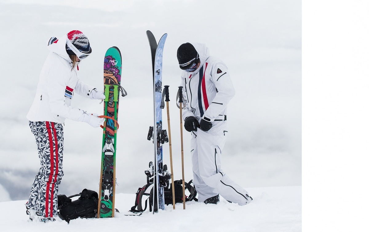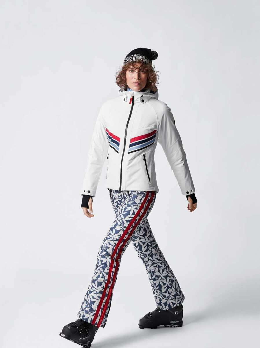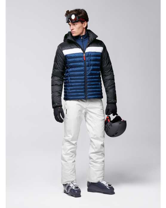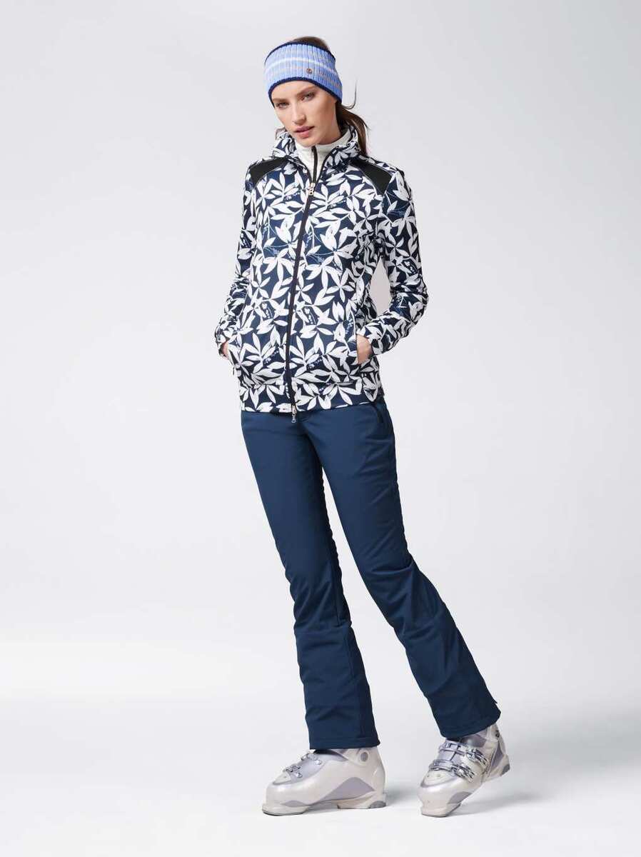 The menswear collection is again dominated by dark blue and black, but you will also find there a snow-white version of the high-quality ski pants. Ski jackets with a racing look boast all of the functions needed to achieve first-rate performances. They have adjustable sleeves, elastic thumb loops and a hood with an adjustable edge.