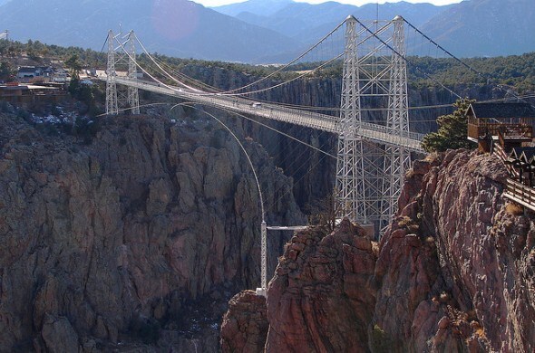 The bridge connects two parts of the popular amusement park Royal Gorge Bridge & Park and entry is permitted only if the park is opened. The steel base is covered with nearly 1300 wooden planks. A passenger vehicle may still drive through the bridge, but buses or lorries are prevented from access. The bridge was built during 6 months in 1929 and cost USD 350,000.