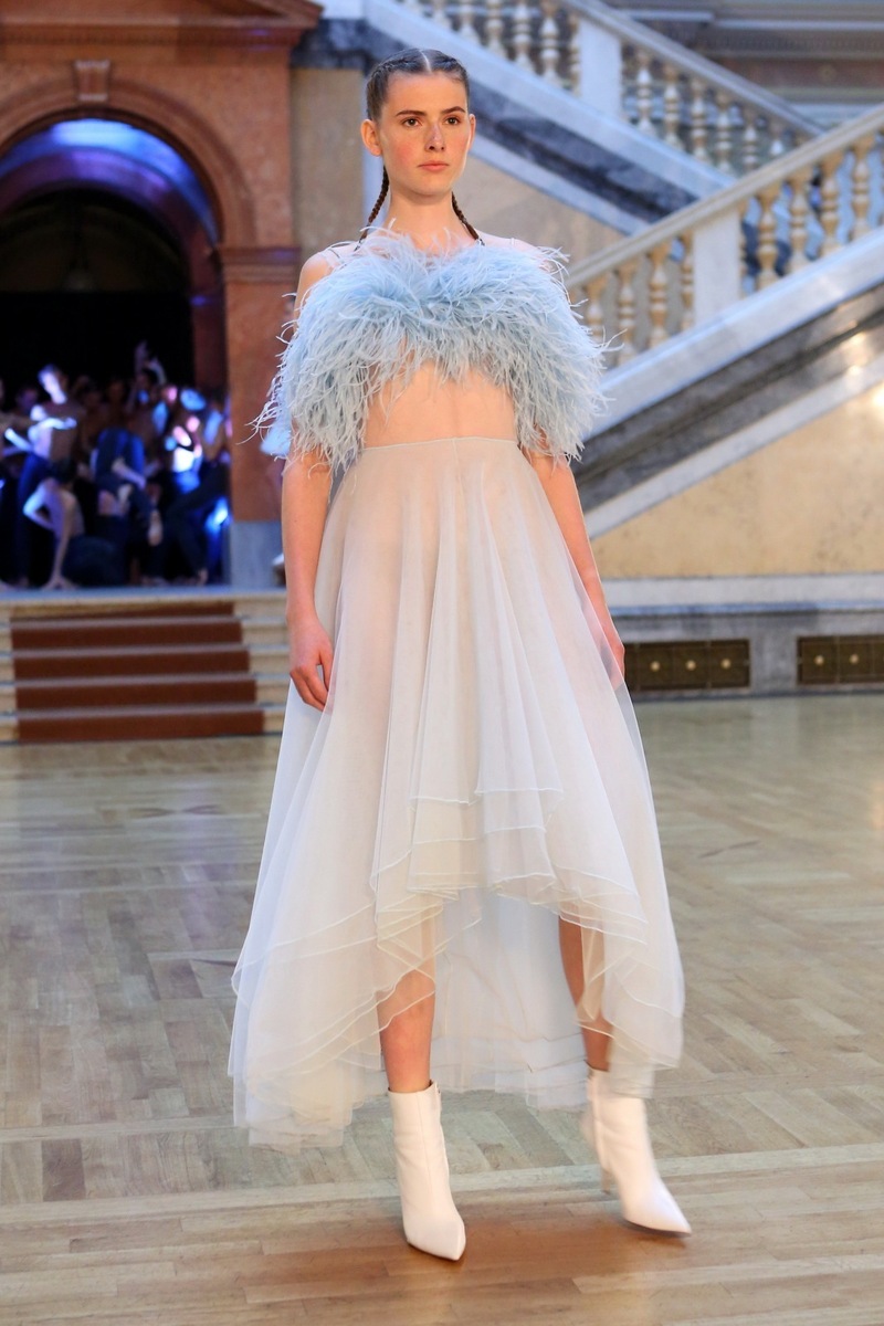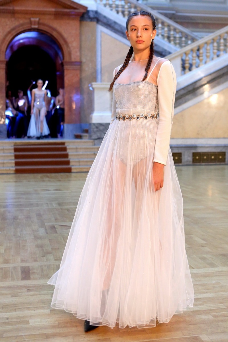 When we mention Zuzana Kubíčková, everybody doubtless imagines the finest and most luxuriously detailed workmanship. This collection was no different. Cut crystal reflected the lights in the hall, tulle and feathers danced around beautiful bodies. The thirty classic garments with sheer materials, embellishments and flawless details could only be admired.